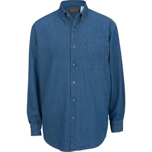 This Men's mid-weight denim short sleeve shirt is a casual classic. Pre-washed denim gives you broken-in softness right from the start. 100% Cotton; 6.5 oz. wt. Traditional full fit with button down collar, left chest pocket, back box pleat, and horn buttons. Tuff-Testedi. Great for work outdoors or inside. Embroiders well. Companion style is our denim midweight long sleeve shirt. Industrial launder or machine washable. Men's Sizes: Regular - S - 3XL. Tall - LT - 6XLT.