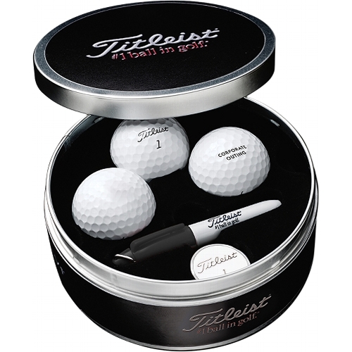 >Tin can be ordered with Titleist branding or it can be imprinted on the lid with your logo (call for charges, 96 min)